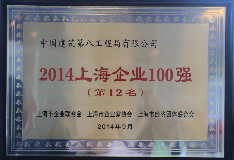 9月10日,从“2014上海百强企业发布会”上传来喜讯,中建八局位居上海百强企业第12名,首次跻身全市建筑企业榜首。