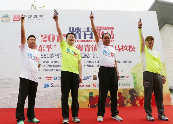 朱庆涛介绍,马拉松运动不仅可以健身,还是一种很好的减压方式,在东孚公司有着很好的群众基础和需求。从董事长到普通员工都热心这项运动,自发地参与了许多国内外马拉松赛事。朱庆涛说,一个人跑,可以跑出一个色彩;一群人跑,可以跑出一道彩虹,马拉松文化有助于我们提升团队凝聚力和品牌影响力。谈到本次比赛选址动因,朱庆涛表示,青浦是创业的热土,我们在青浦的西虹桥板块开发了大型城市综合体项目——中建锦绣天地,前几年参与了青浦的保障房建设,不久的将来还会参与新型城镇化的改造升级。我们携手专业组织“550为梦想奔跑”俱乐部举办此次赛事,也是想为更好地履行社会责任,推动全民健身运动,为青浦区体育事业贡献绵薄之力。当然,当地得天独厚的新江南水乡环境、深邃的历史文化积淀,也是主办者选址的重要考虑。