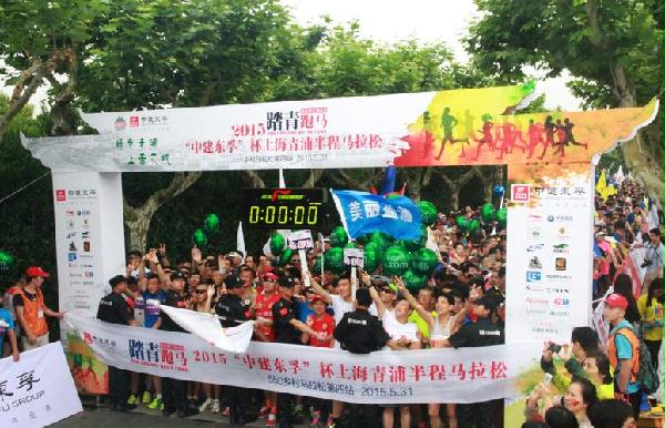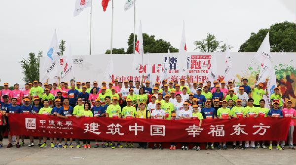 5月31日,2015“中建东孚杯”上海青浦半程马拉松赛在美丽的淀山湖畔开跑。开跑仪式上,中建八局地产平台——中建东孚投资发展有限公司党委书记朱庆涛代表合作方致辞。他表示,公司致力建设为客户带来幸福的人居,也倡导我们的员工、合作伙伴都拥有健康幸福的人生。他寄语广大跑友挑战自我、超越自我,跑出健康、跑出欢乐、跑出精彩。