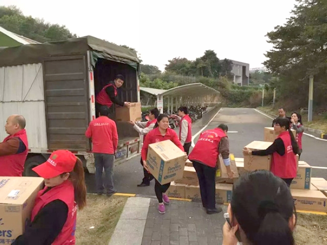 广西公司副总经理深圳片区党总支书记张旭东带领“红马甲”——“幸福空间•阳光公益团”的成员,帮助前线搬运物资,并共同协助救灾官兵进行物资归类;部分成员则留在居民安置点,帮助开展安置点现场的组织协调工作。